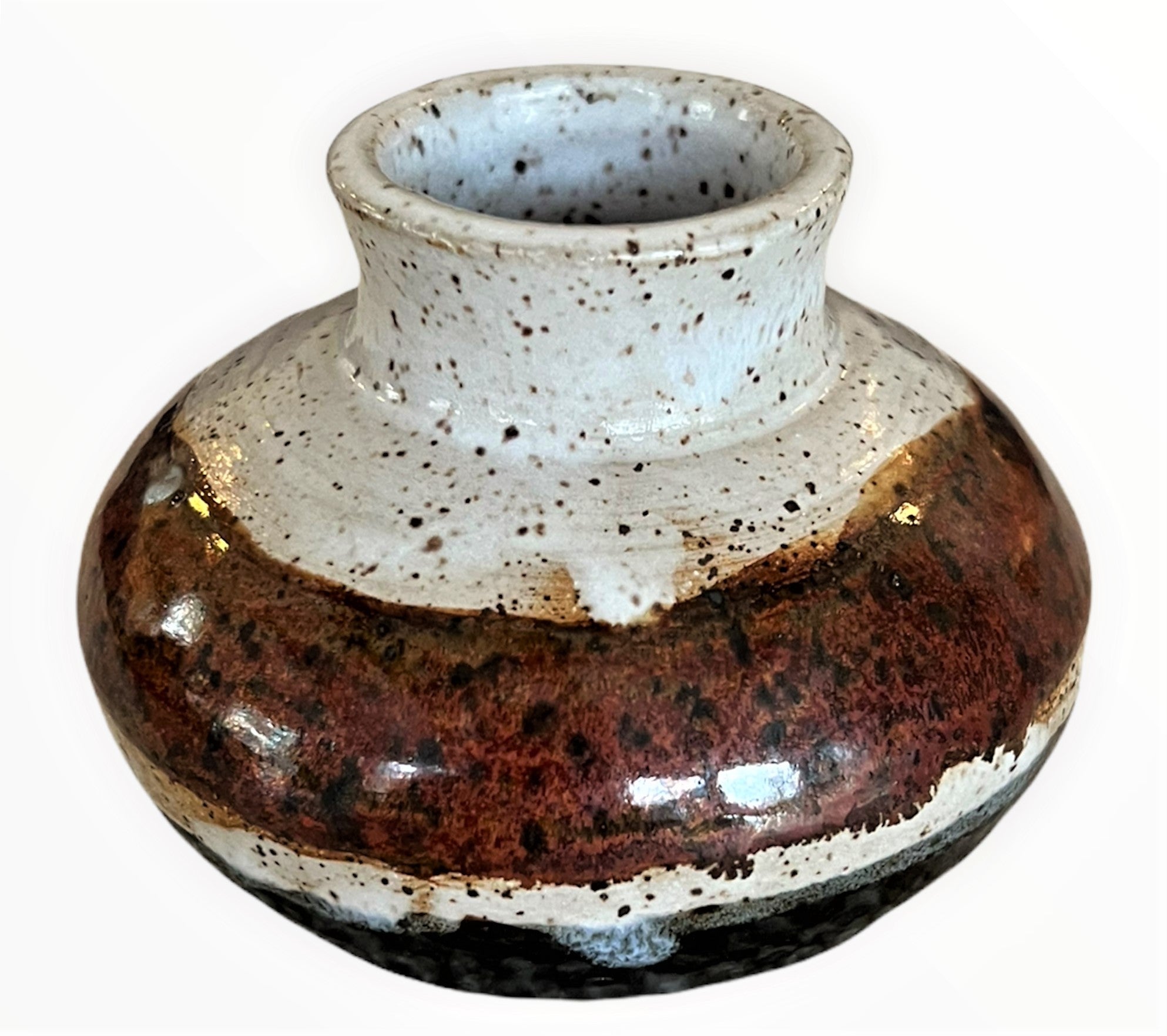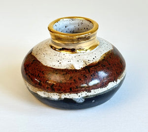 Charming bud vase in shades of Santa Fe. Gold lustre lip. Modern small vase is rustic in shadess yet elegant in shape.