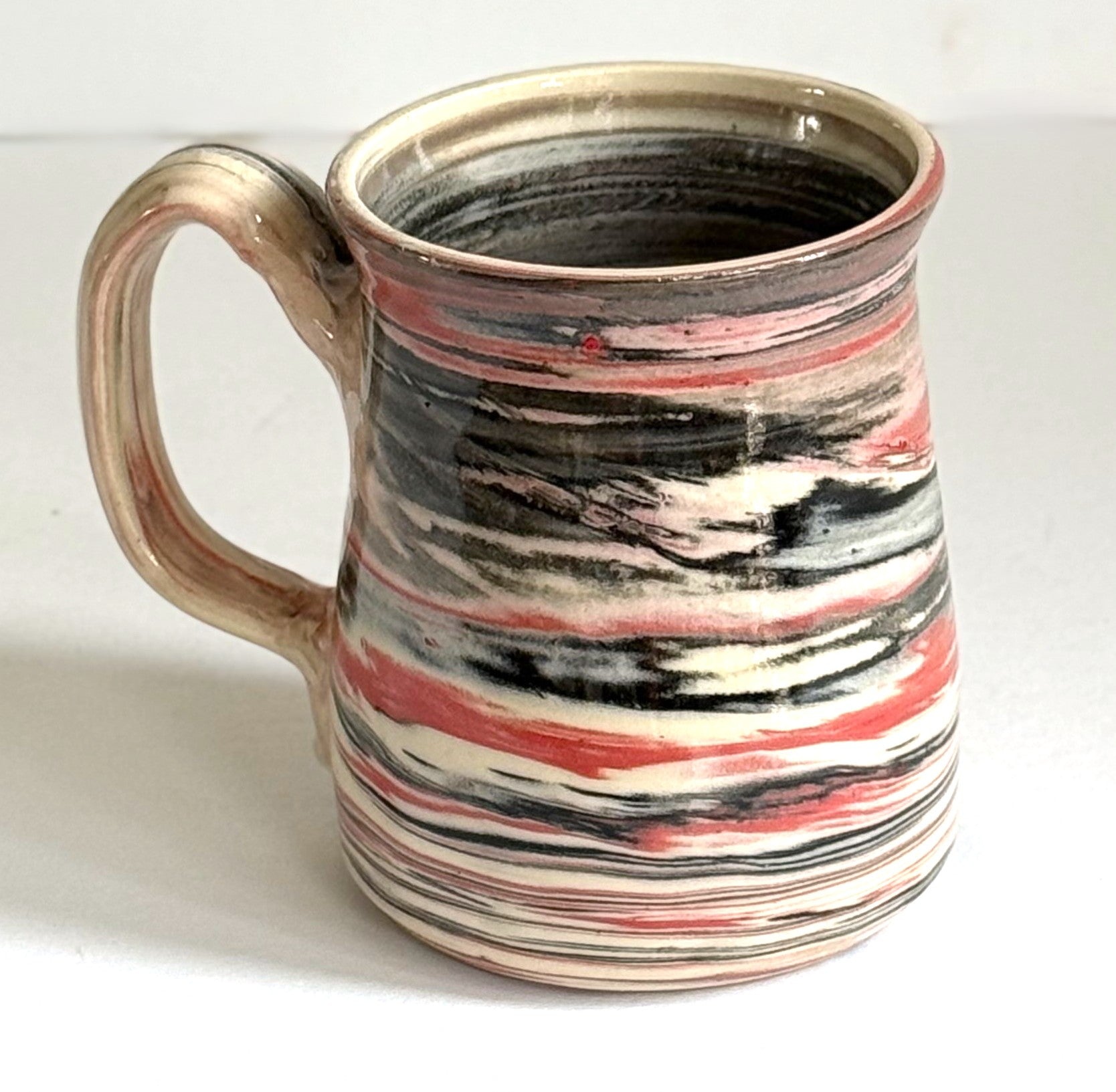Porcelain. Marbled, layered white, red and black clay create this unique straight mug. Holds 12 oz.